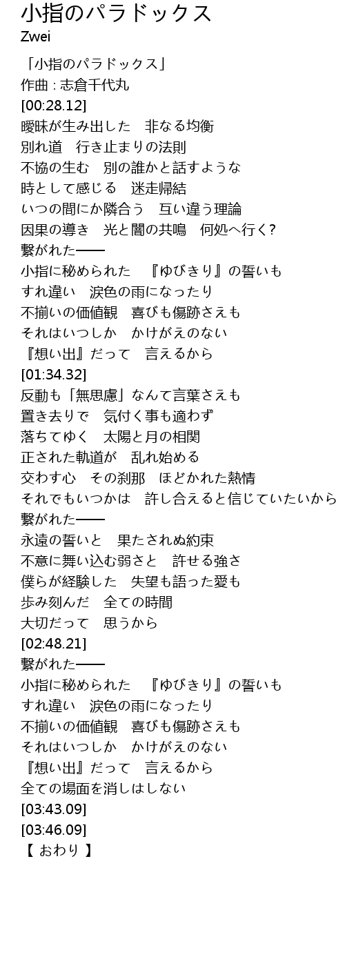 | [03:12.19] | 小指に秘められた 『ゆびきり』の誓いも |