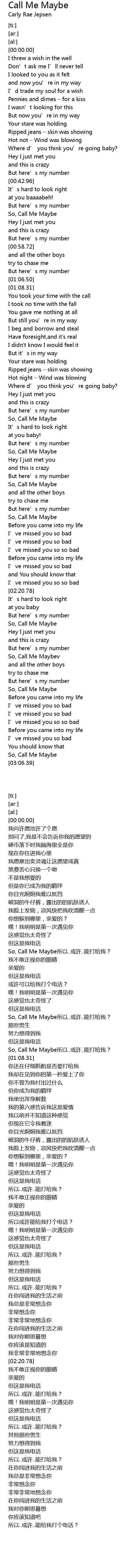| [03:04.00] | So, Call Me Maybe |
