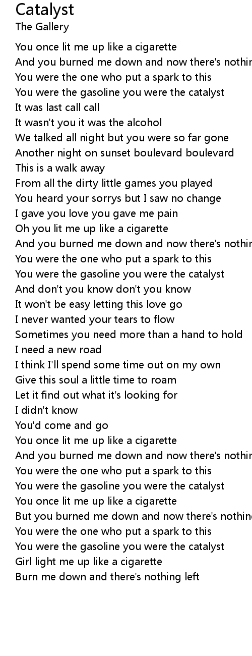 You were the gasoline you were the catalyst |