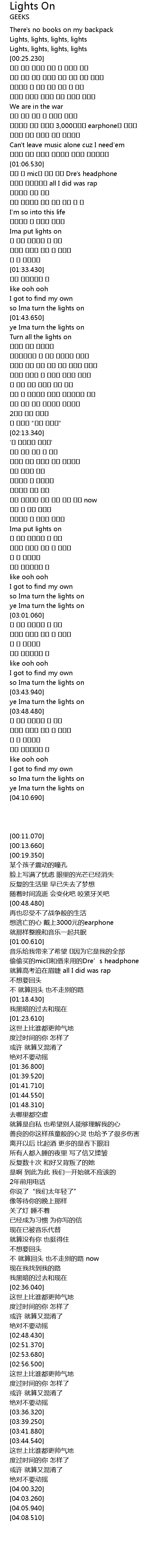 | [00:19.350] | Lights, lights, lights, lights |
