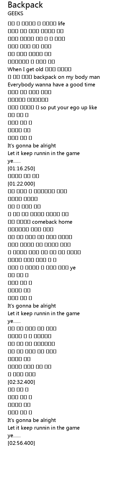 | [00:41.740] | 난 죽을 때까지 backpack on my body man |