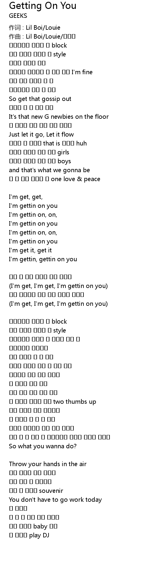 | (I'm get, I'm get, I'm gettin on you) | |