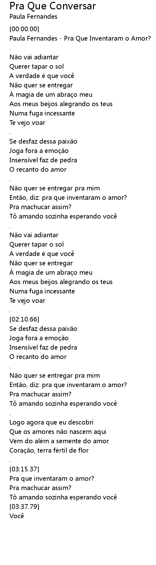 | [00:00.25] | Paula Fernandes - Pra Que Inventaram o Amor? |
