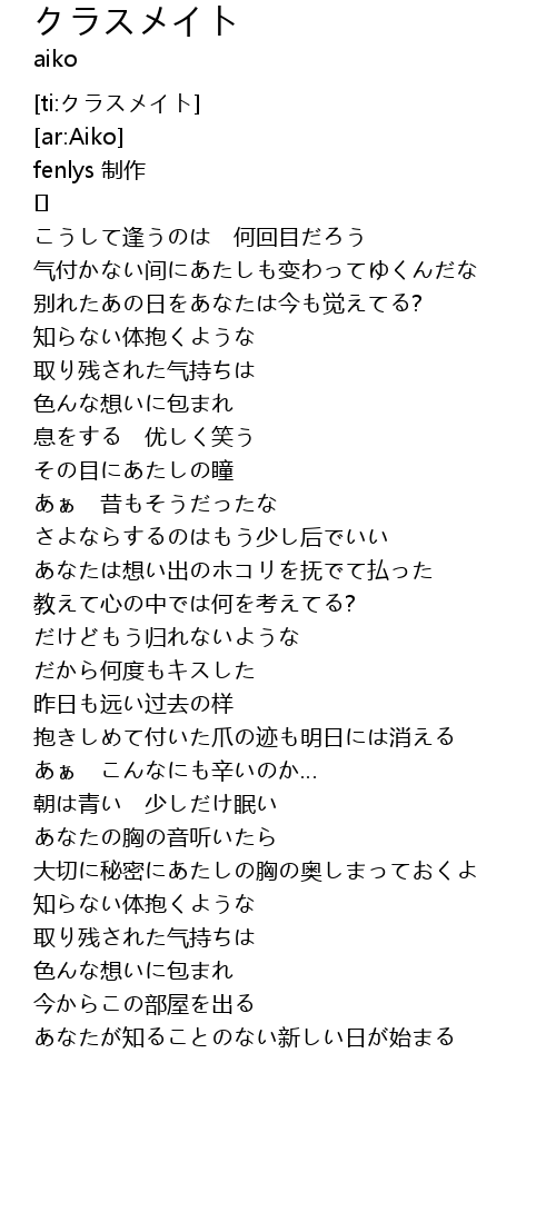| [02:53.511] | 抱きしめて付いた爪の迹も明日には消える |
