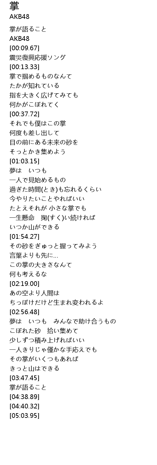 | [01:55.20] | その砂をぎゅっと握ってみよう |