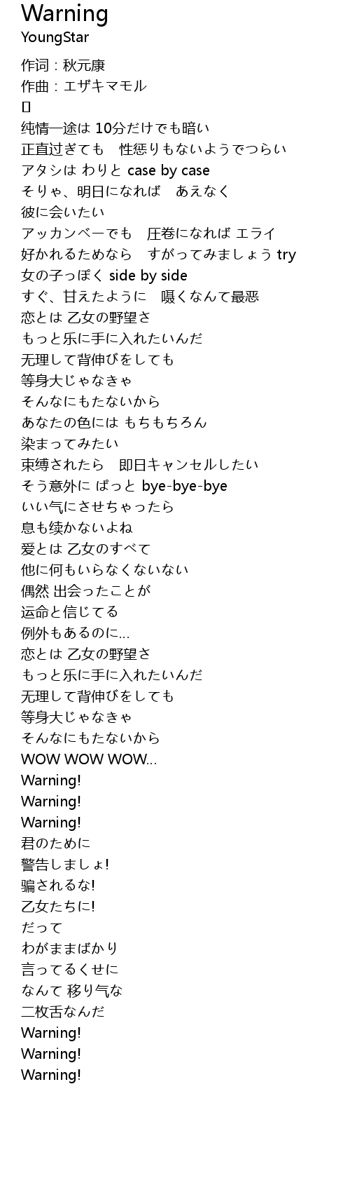 | Song | Warning |