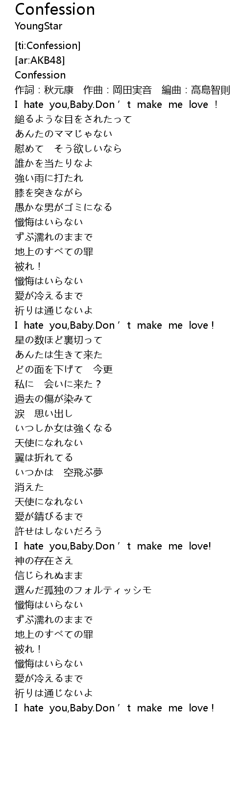 | [00:14.567] | I hate you, Baby. Don ' t make me love ! |