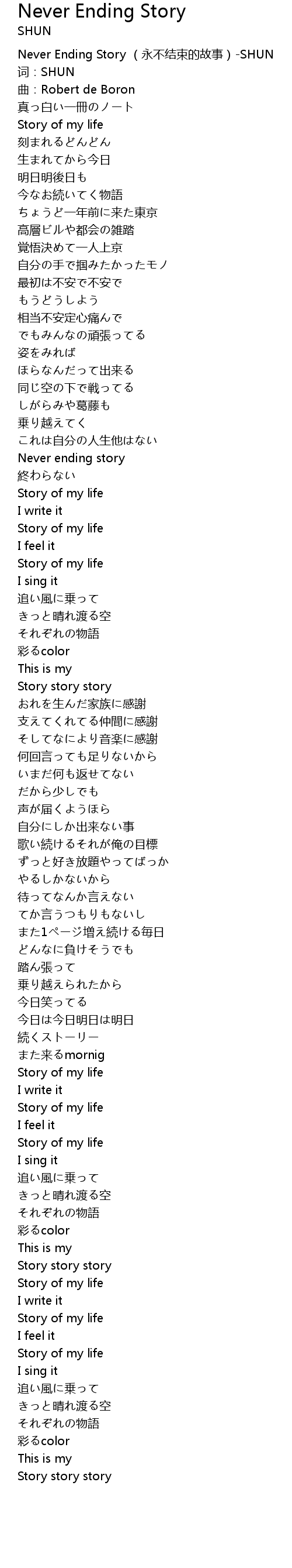 | [00:00.00] | Never Ending Story yǒng bù jié shù de gù shì SHUN |