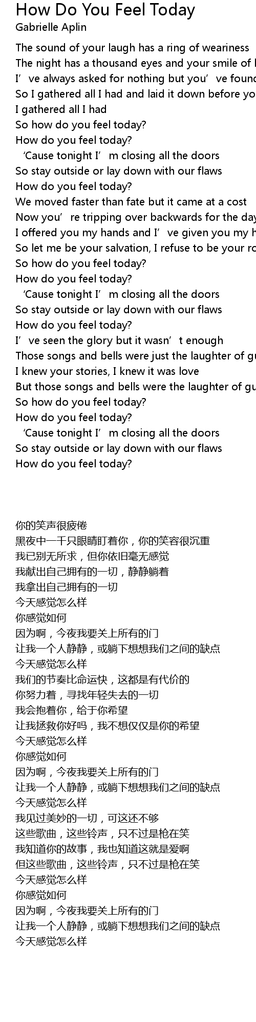 | [00:10.51] | The sound of your laugh has a ring of weariness |