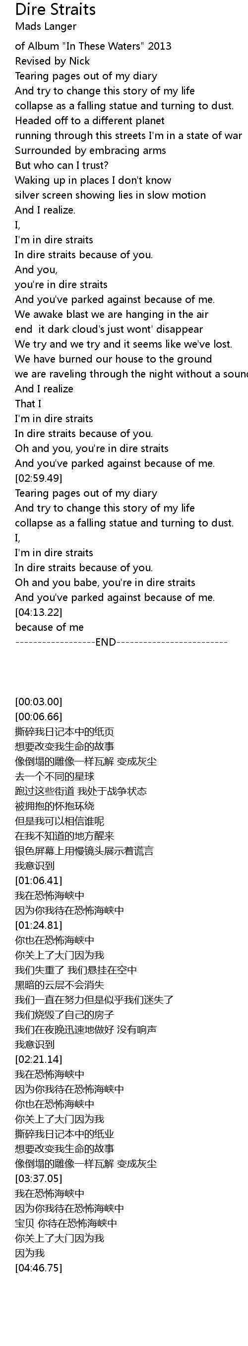 Oh and you babe, you're in dire straits |
