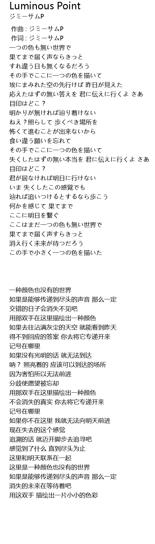 | [00:01.00] | 作词 : ジミーサムP |