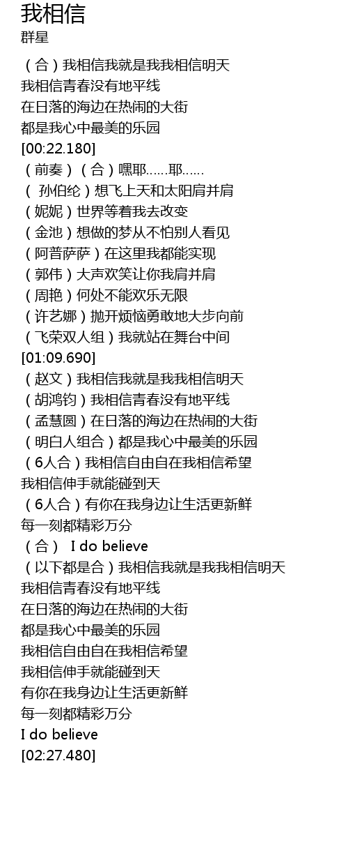 | [00:04.120] | (合)我相信我就是我我相信明天 |