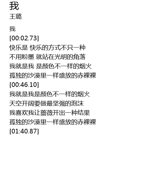 | [00:24.98] | 我就是我 是颜色不一样的烟火 |