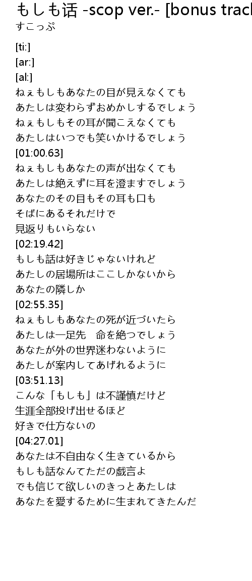 | [02:59.69] | ねぇもしもあなたの死が近づいたら |