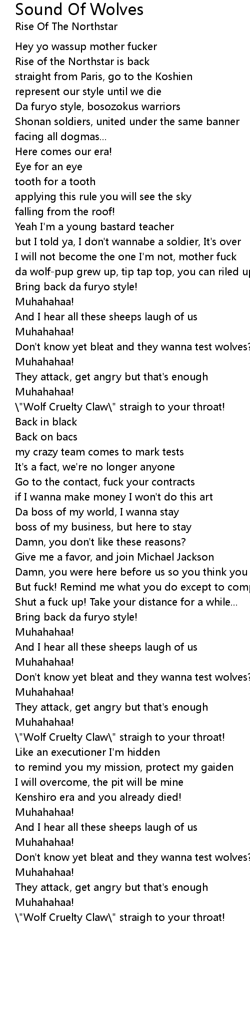 da wolf-pup grew up, tip tap top, you can riled up, but... |