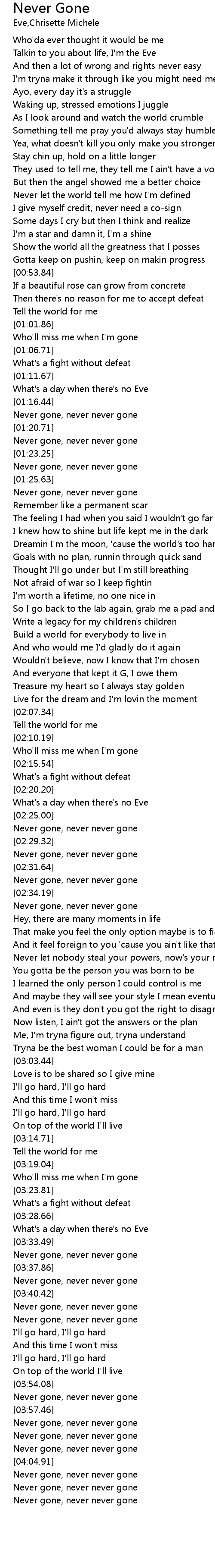 | [01:37.55] | Goals with no plan, runnin through quick sand |
