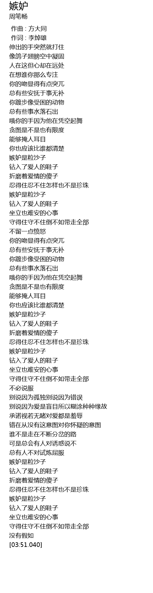 | [03:31.290] | 嫉妒是粒沙子 |