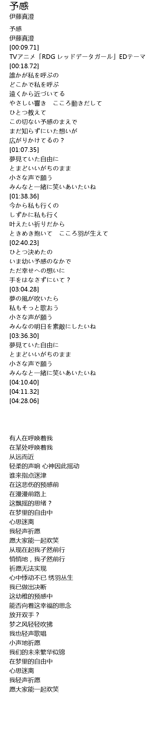 | [00:00.00] | 予感 |