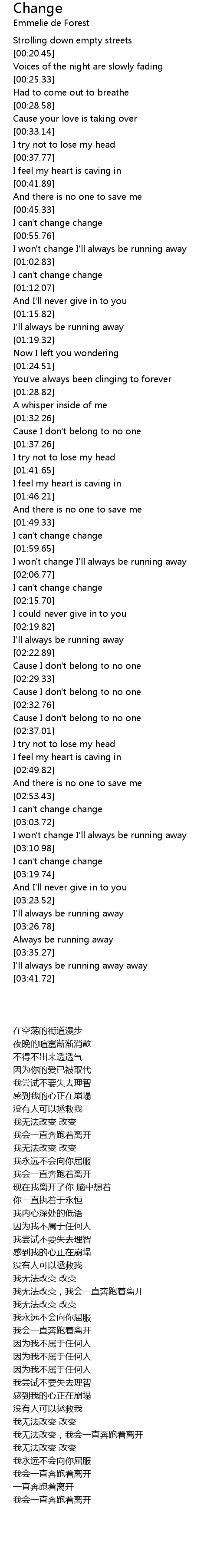 I won't change I'll always be running away |