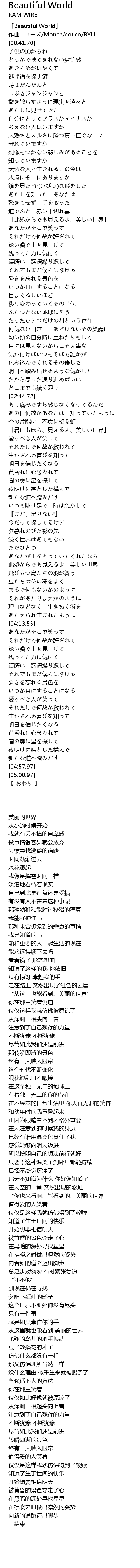 | [00:01.70] | 「Beautiful World」 |