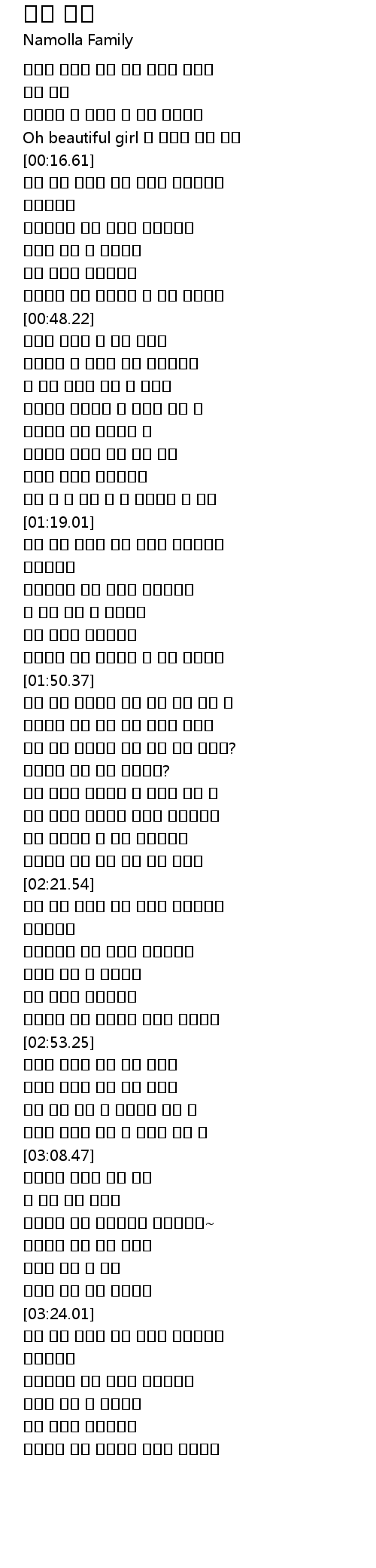 | [00:13.20] | Oh beautiful girl 내 사랑은 그대 하나 |