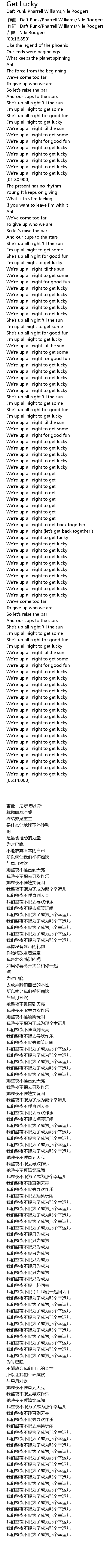 | [00:01.00] | 作词 : Daft Punk/Pharrell Williams/Nile Rodgers |