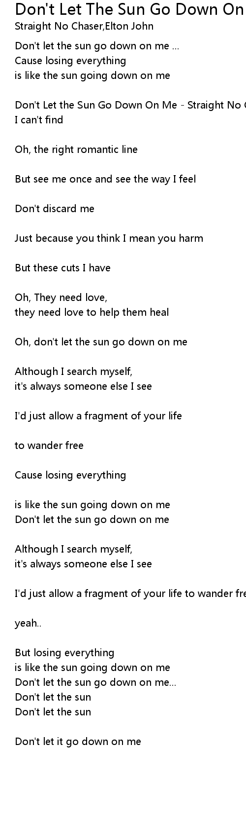 Oh, don't let the sun go down on me |