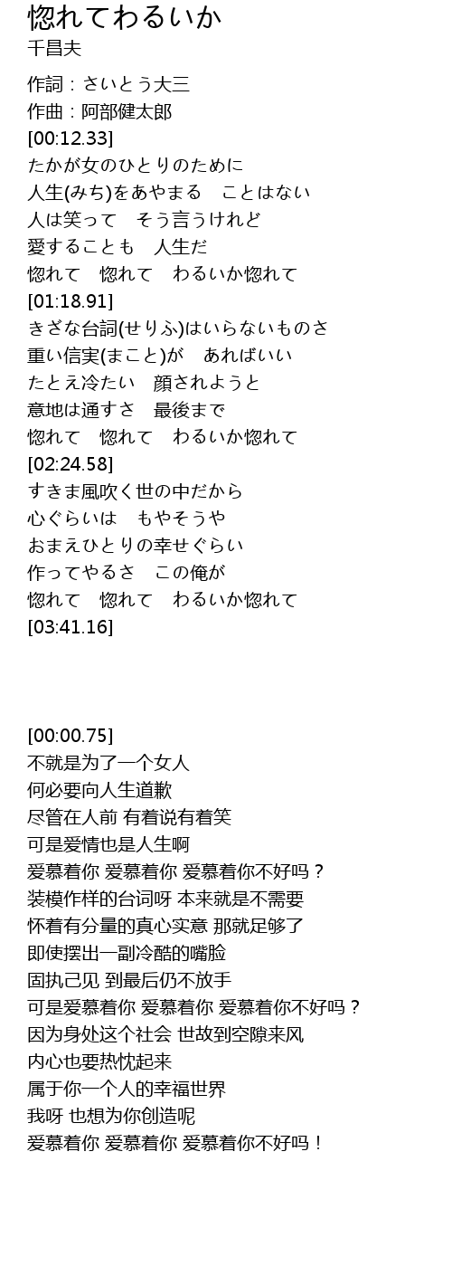 | [01:05.44] | 惚れて 惚れて わるいか惚れて |