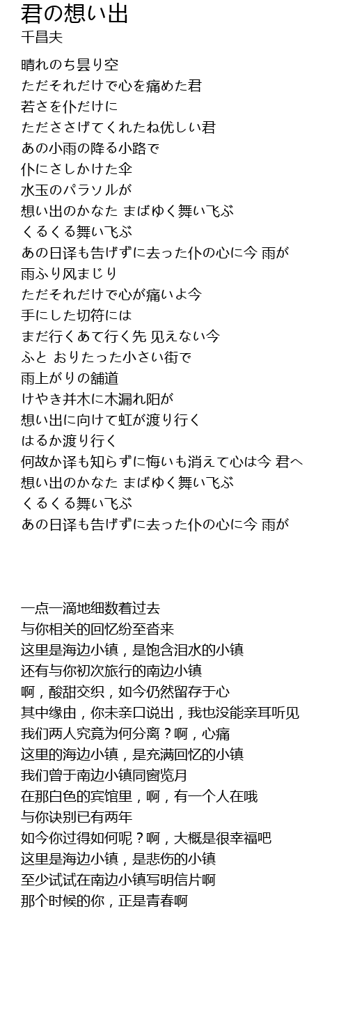 | 何故か译も知らずに悔いも消えて心は今 君へ | |