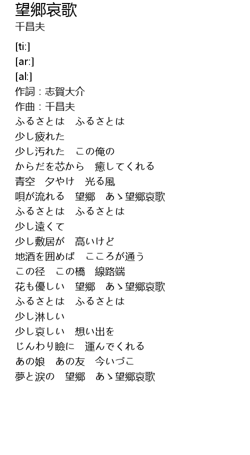 | [02:35.30] | 花も優しい 望郷 あゝ望郷哀歌 |