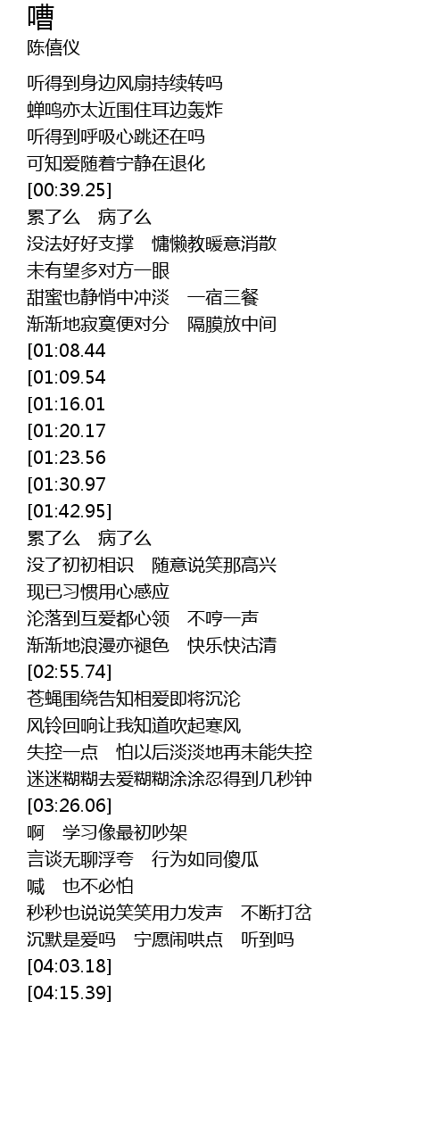| [00:39.86] | 累了么 病了么 |