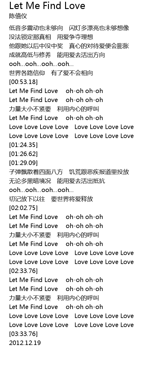 | [02:03.49] | Let Me Find Love ohoh ohoh |