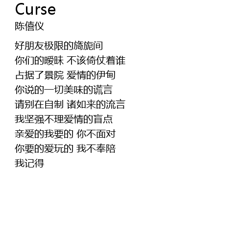 | [00:16.86] | 你们的暧昧 不该倚仗着谁 |