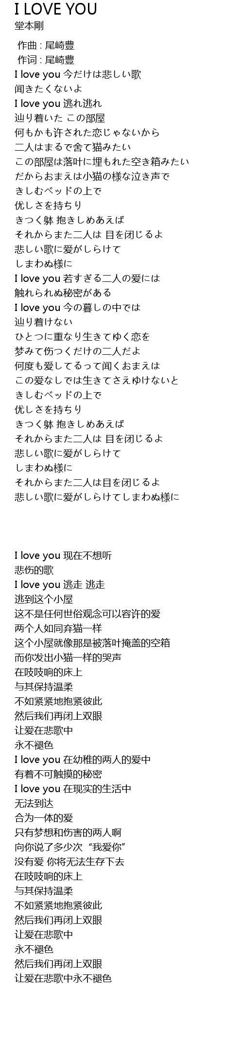 | [00:14.64] | I love you 今だけは悲しい歌 |