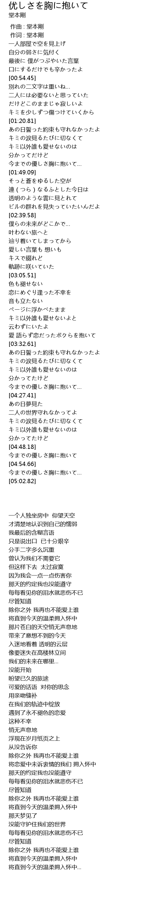 | [04:55.09] | 今までの優しさ胸に抱いて… |