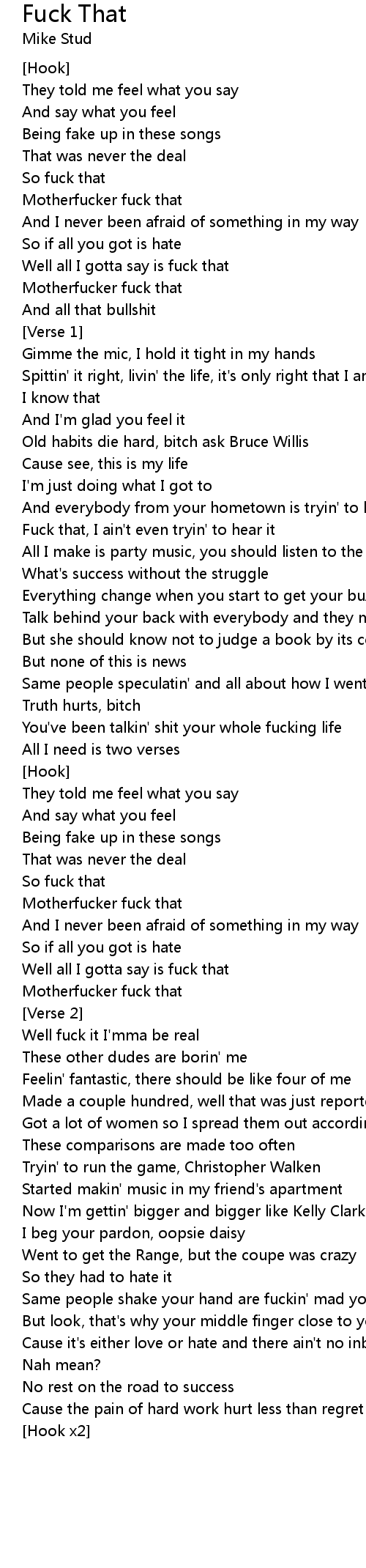 | All I make is party music, you should listen to the lyrics, motherfucker | |