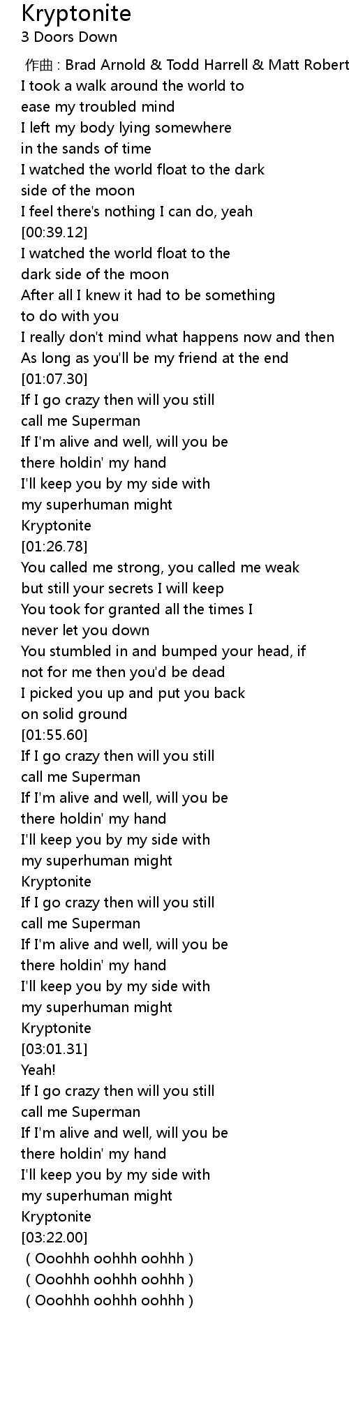 | [00:00.00] | zuo qu : Brad Arnold Todd Harrell Matt Roberts |