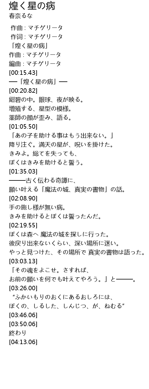 | [00:00.43] | 「煌く星の病」 |