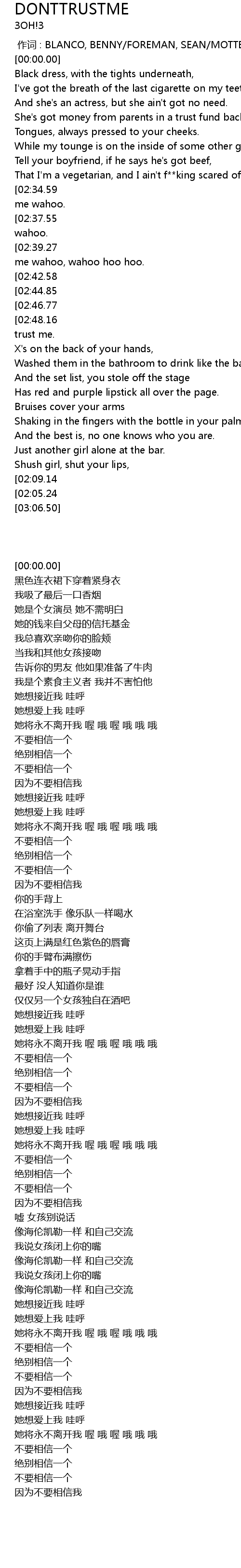 | [03:01.48][02:46.77][01:55.14][01:40.22][00:56.01][00:41.18] | Won' t trust a ho. |
