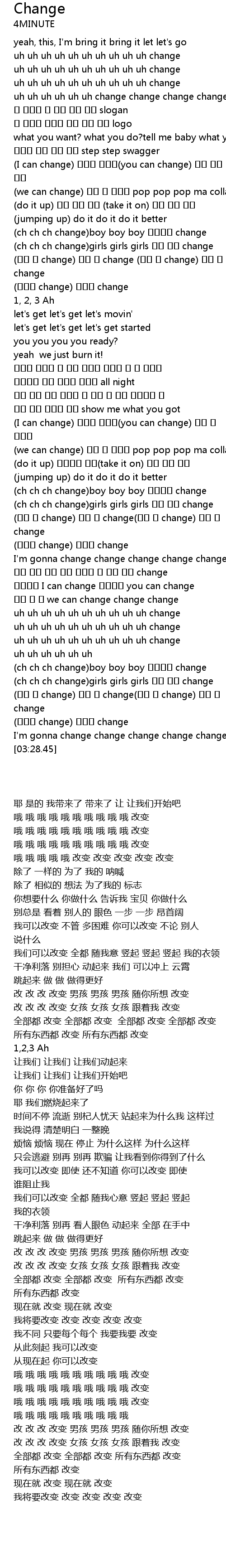 | [03:19.68] | (모두 다 change) 모두 다 change(모든 걸 change) 모든 걸 change |