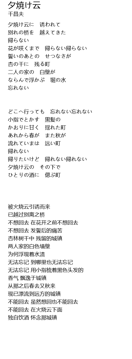 夕焼け云に 诱われて |