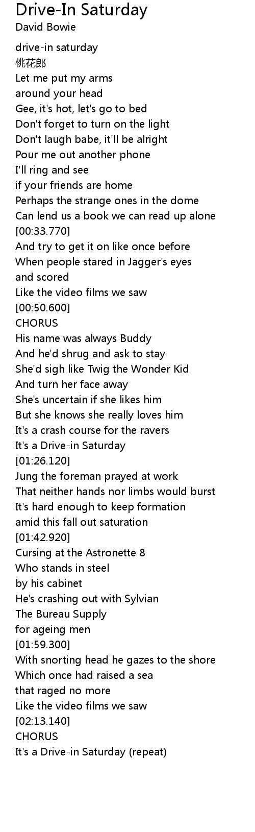 | [02:42.530] | It's a Drive-in Saturday (repeat) |