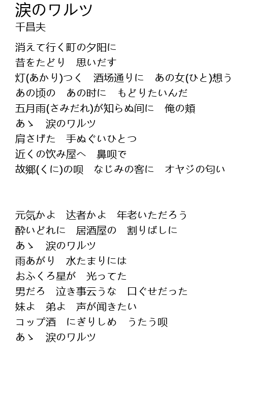 | 灯(あかり)つく 酒场通りに あの女(ひと)想う | |
