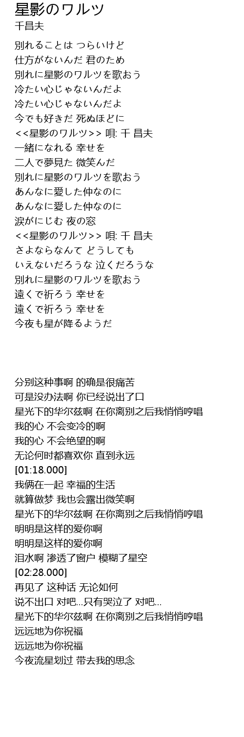 | [02:28.000] | <<星影のワルツ>> 唄: 千 昌夫 |