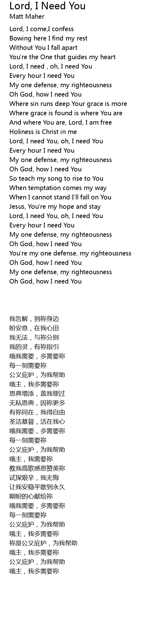 Lord, I need You, oh, I need You |