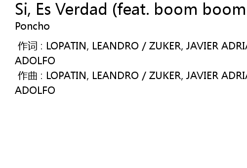 | [00:00.000] | 作词 : LOPATIN, LEANDRO / ZUKER, JAVIER ADRIAN / PICCIANO, FABIAN ADOLFO |