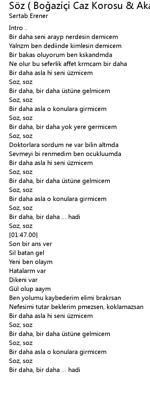| Song | Söz ( Boğaziçi Caz Korosu & Akapella Versiyon ) |