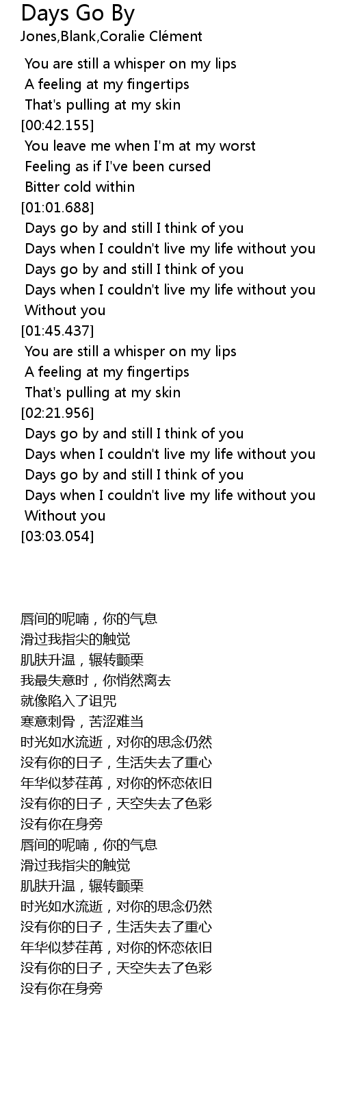 Days go by and still I think of you |