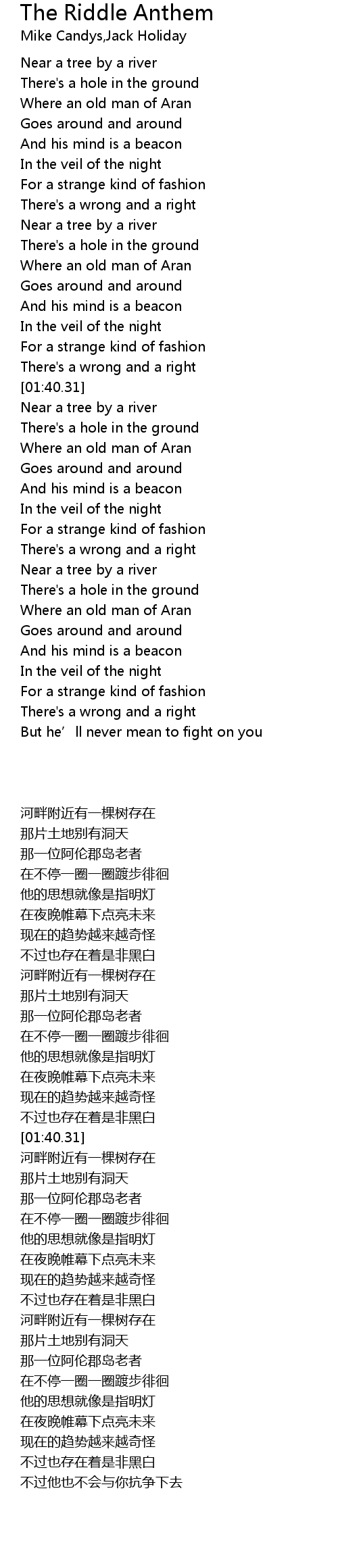 | Song | The Riddle Anthem |