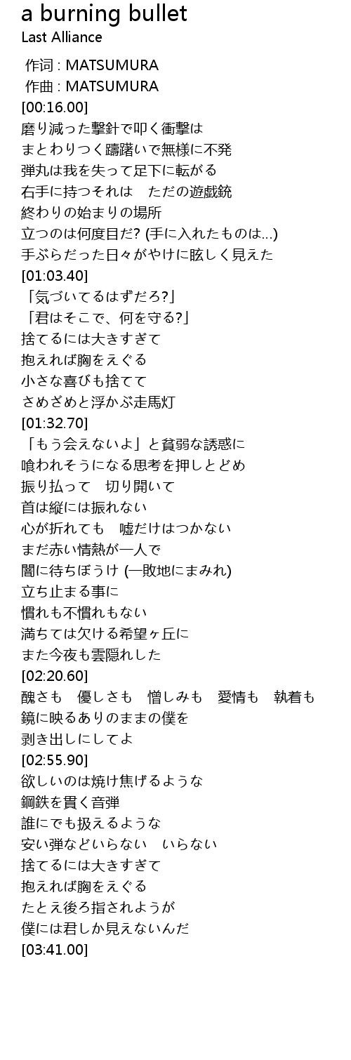 | [00:36.50] | 弾丸は我を失って足下に転がる |
